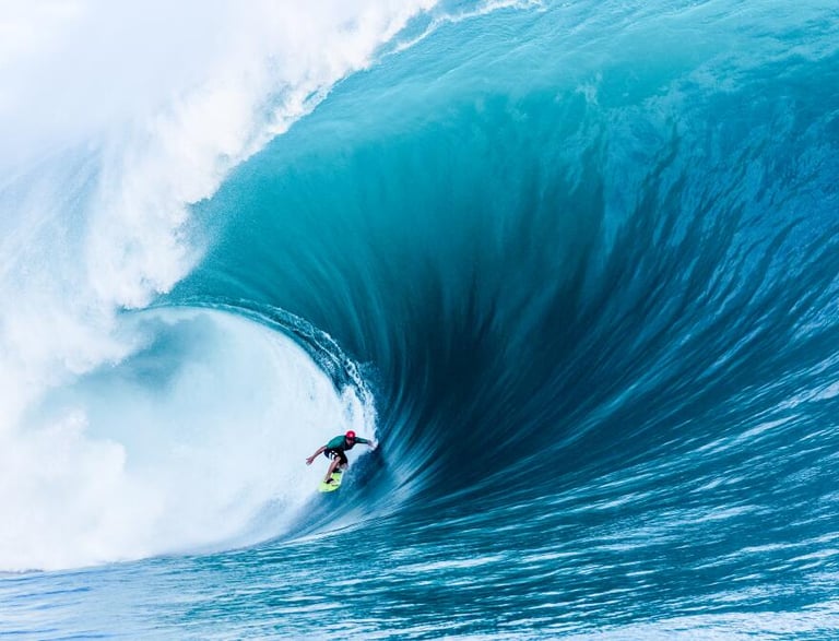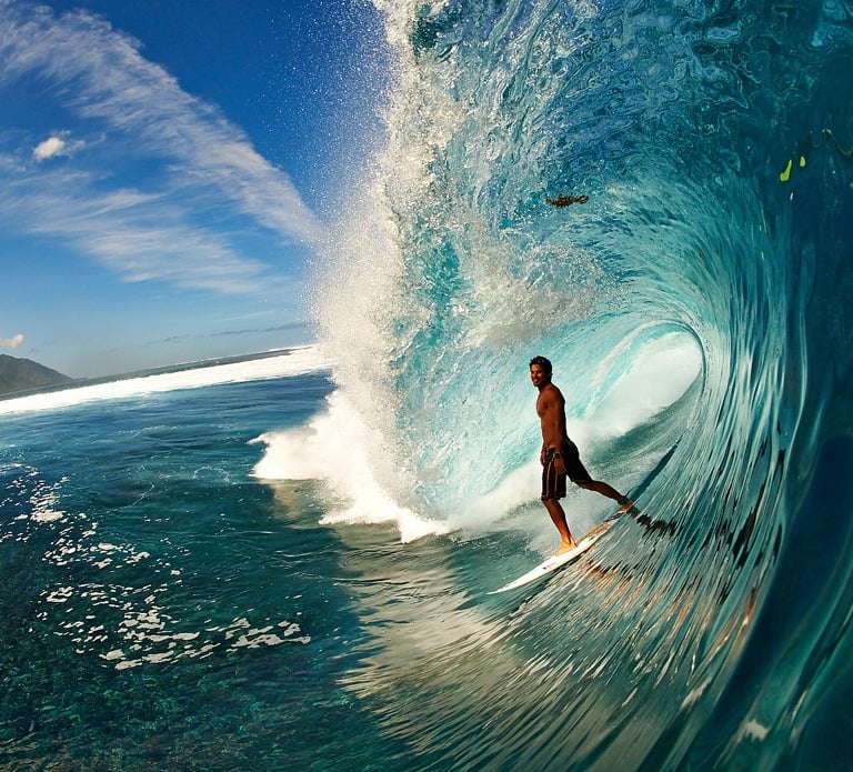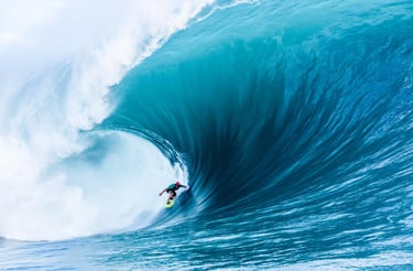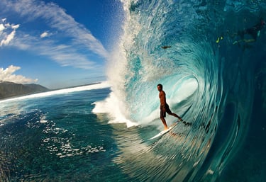 An article in the Orange County Register discusses the feeling of "shooting the curl," describing it as being in a different zone or dimension where time seems to slow down, and hearing "the sound".
